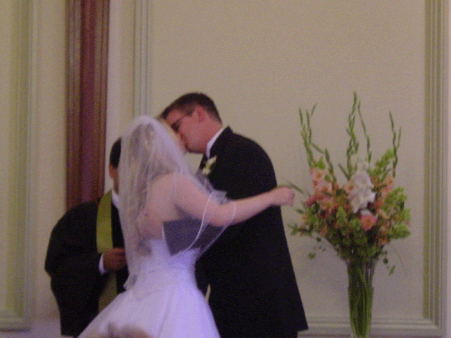 Ceremony Exchanging vows. Doug gives Jessica the ring. Jessica gives Doug his ring. The kiss. The married couple! Mr. and Mrs. Schiller! Outside after the wedding. Heidi outside the church. Our table. Our table. Our table.