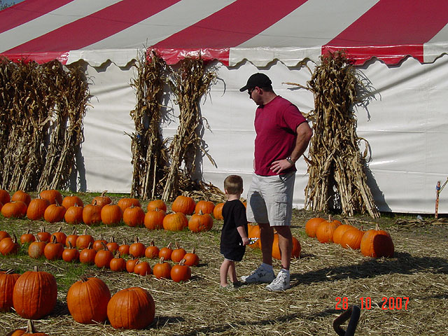 Hunter and Dave looking for pumpkins Hunter and Dave looking for pumpkins Hunter gets a ride Hunter picks out a little pumpkin We've found our pumpkins Ready to take our pumpkins home