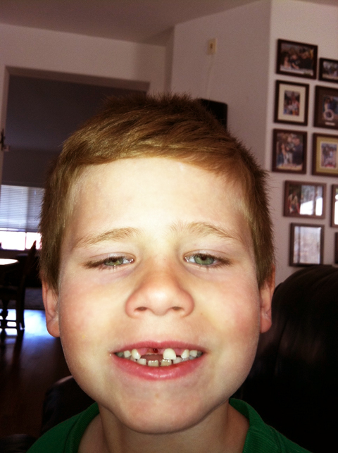 May 10, 2011Hunter's front tooth is finally out after dangling there for weeks. The other one is really loose too!