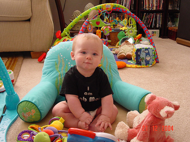 Hunter being a good boy playing while mommy works... Hunter loves to sit on the floor and play now. Having fun... Still playing... What? Heidi tries to work, but now Allie wants attention...