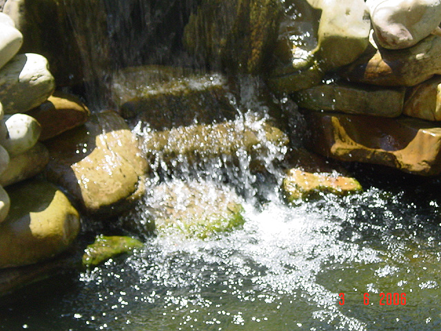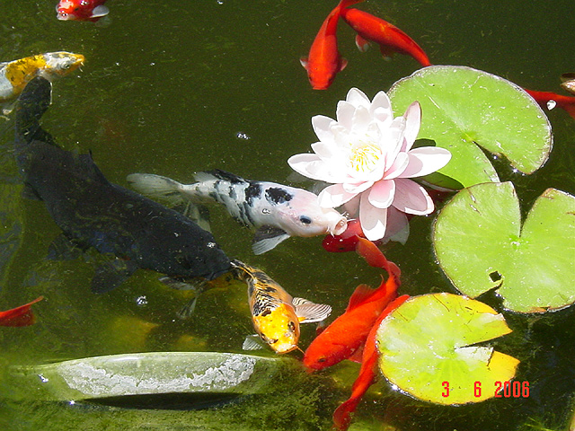 Big bull frog. Koi at the waterfall. Water Lily bloom. Water Lily bloom. Baby turtle. Pond, June 2006 waterfall waterfall Fish and water lillies. A pretty picture... New Lotus Lotus