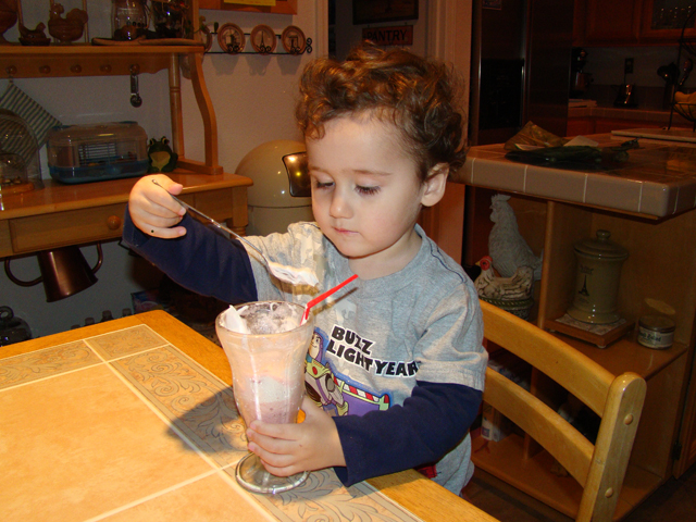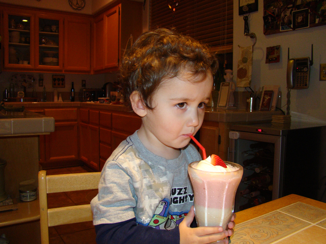 February 14, 2011Ryder having fun with his Valentine's Day balloon from daddy, and enjoying the special V-Day shake mom made for him. Click any image for larger view.