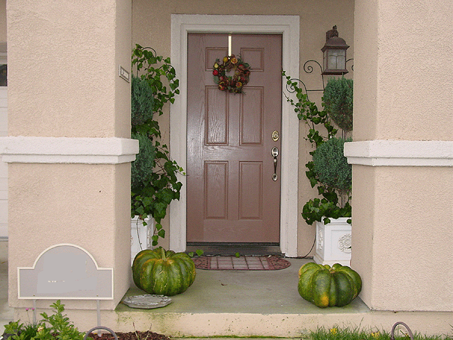 Autumn wreath. Centerpiece with Dave and Heidi's homegrown vegetables. Pumpkins from our vine. Huge pumpkin!