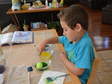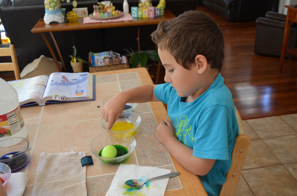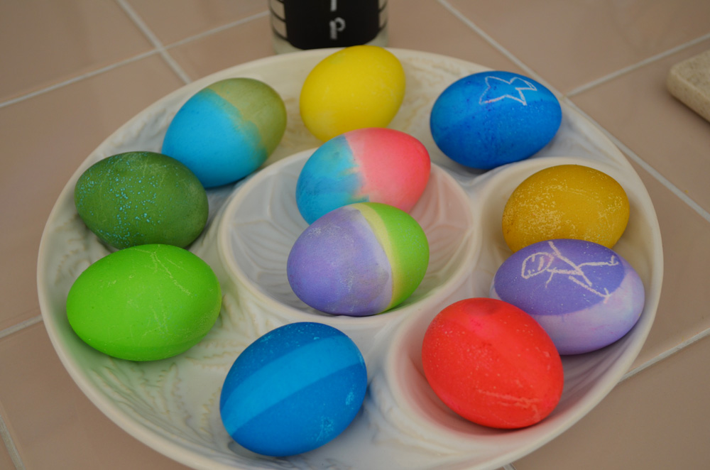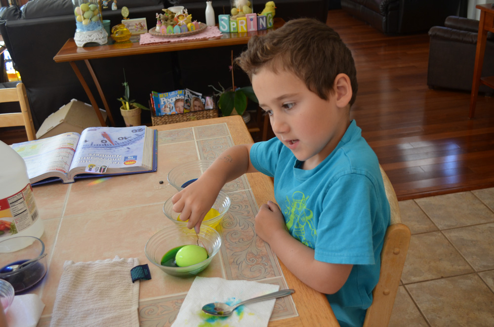 Ryder coloring Easter eggs. (Hunter helped too...)