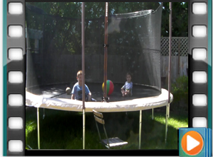 Ryder with Hunter on the trampoline.