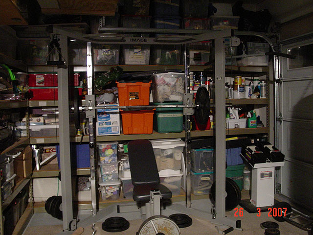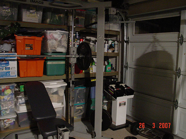 Finally we've got the garage clean enough to move the exercise bike out of the house and set up gym equipment for Dave to work out!